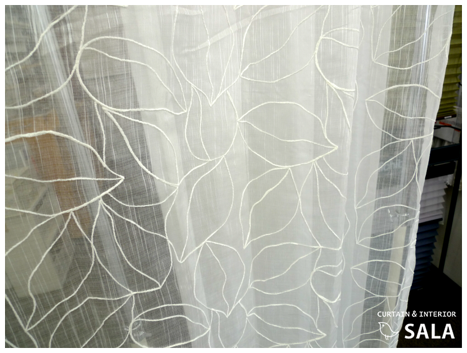 リーフ柄の刺繍のレース。