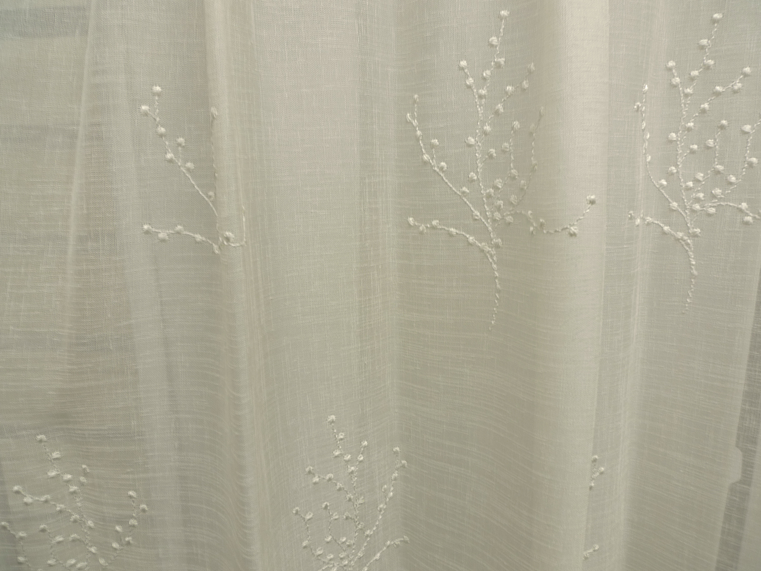 さり気ないシンプルな刺繍柄は厚地カーテンに合わせやすく、